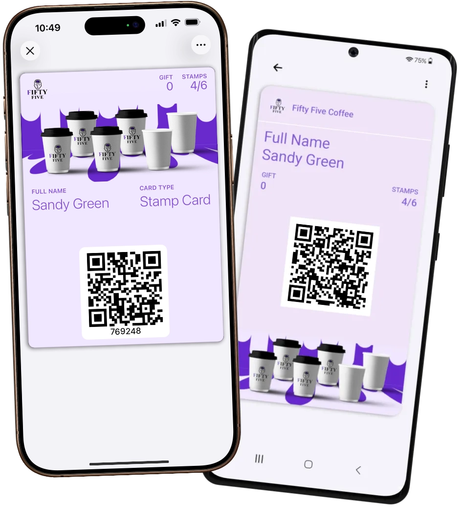 BrandWallet places your brand's loyalty card in Apple Wallet and Google Wallet, right next to your customers' credit cards. No app required.